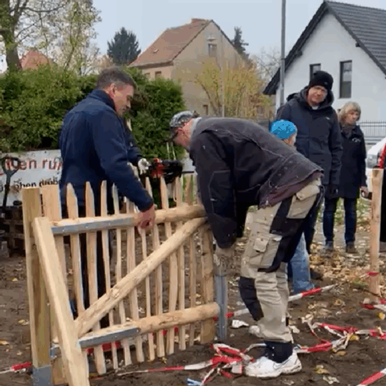 Im Vorfeld der Baumpflanzung des Musikerwaldes am 15.11.2025 wurden vergangene Woche bereits die Pfähle und das Eingangstor für den Zaun gesetzt. Dabei hatte das Team des Bäume für die Zukunft e. V. u.a. tatkräftige Unterstützung von Kolleg*innen aus Stahnsdorf, die es auf dem 1. Treffen der Reihe „TKS engagiert sich“ zum Thema „Umwelt und Nachhaltigkeit“ kennengelernt hat. Somit hat sich das Netzwerktreffen bereits gelohnt. 🙂