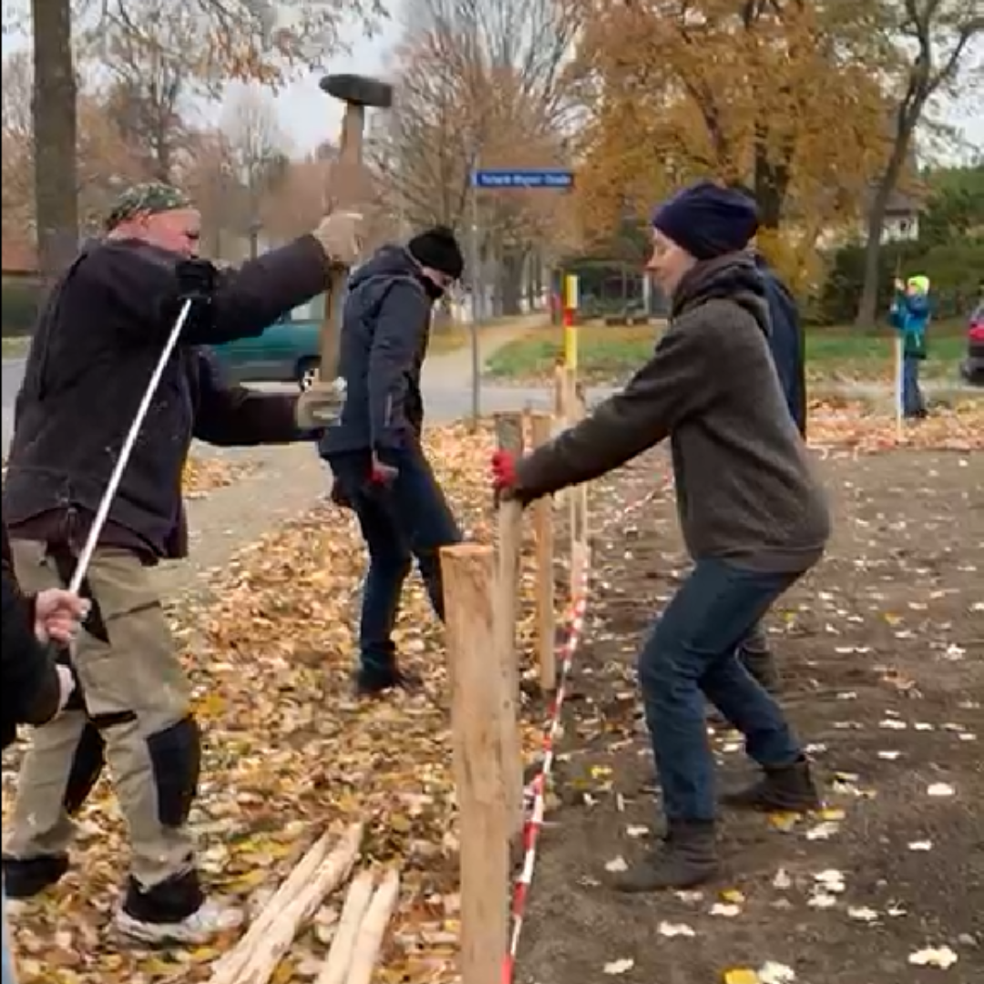 Im Vorfeld der Baumpflanzung des Musikerwaldes am 15.11.2025 wurden vergangene Woche bereits die Pfähle und das Eingangstor für den Zaun gesetzt. Dabei hatte das Team des Bäume für die Zukunft e. V. u.a. tatkräftige Unterstützung von Kolleg*innen aus Stahnsdorf, die es auf dem 1. Treffen der Reihe „TKS engagiert sich“ zum Thema „Umwelt und Nachhaltigkeit“ kennengelernt hat. Somit hat sich das Netzwerktreffen bereits gelohnt. 🙂