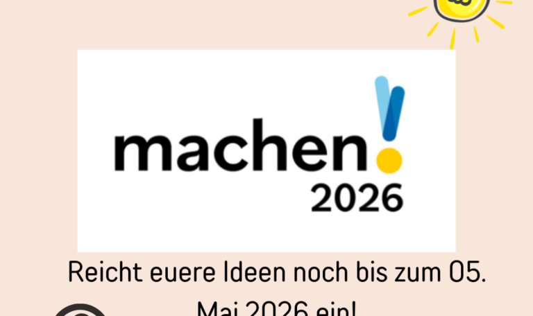 Neue Chance für eure Ideen! 𝐌𝐀𝐂𝐇𝐄𝐍!𝟐𝟎𝟐𝟔 sucht Projekte, die Zukunft gestalten und Menschen verbinden – Bewerbung bis 𝟎𝟓. 𝐌𝐚𝐢 𝟐𝟎𝟐𝟔. ✨ 3 Kategorien:• Lebensräume gestalten• NextGen engagiert• Brücken bauen..